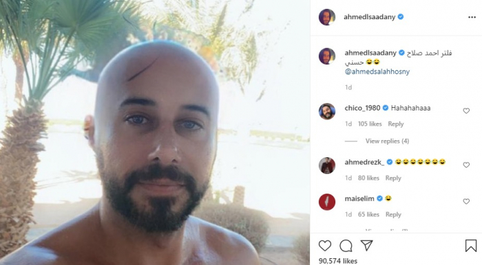 ويبدو أن السعدني استخدم أحد فلاتر برامج التصوير فتغير شكله ليشبه إلى حد كبير الفنان أحمد صلاح حسني، وعلق "السعدني"، على الصورة قائلًا: "فلتر أحمد صلاح حسني".