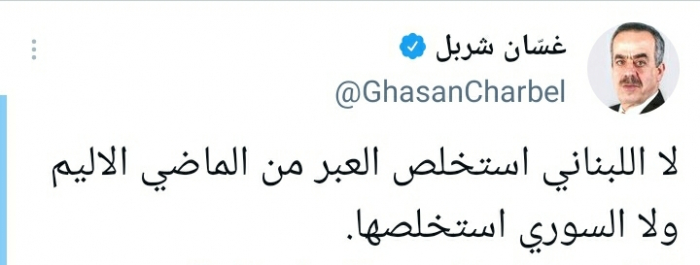 وقال في تغريدة على حسابه بموقع التدوين المصغر تويتر، اليوم إنه: "لا اللبناني استخلص العبر من الماضي الأليم ولا السوري استخلصها".