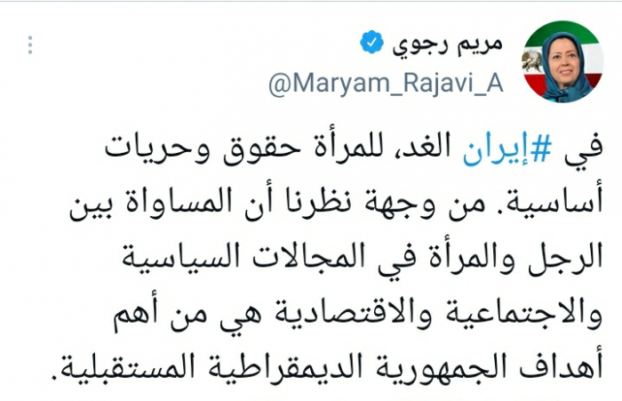 أكدت زعيمة المعارضة الإيرانية، مريم رجوي، أن منح المرأة في إيران حقوقها المسلوبة من أبرز أهداف الجمهورية بعد إسقاط نظام الملالي.