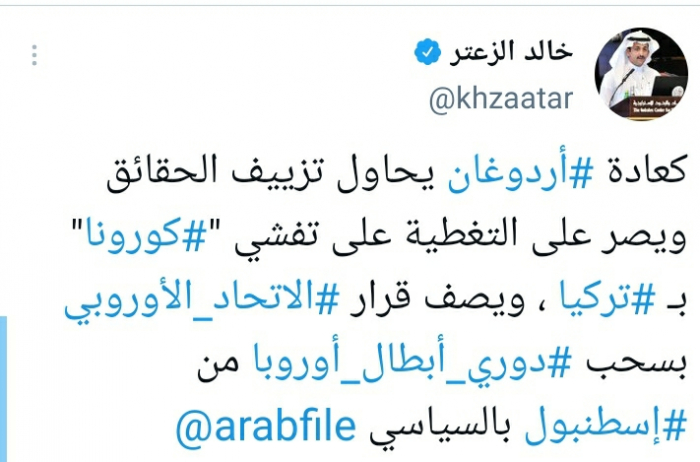 رأى المحلل السياسي خالد الزعتر، أن الرئيس التركي يواصل تزييف الحقائق للتغطية على عجزه في مواجهة فيروس كورونا.