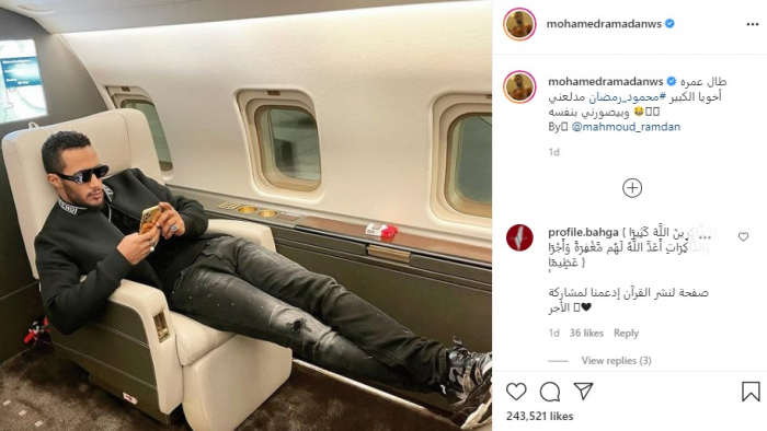 مازح الفنان محمد رمضان، شقيقه الأكبر محمود رمضان، عقب التقاط الأخير صورة له داخل الطائرة.