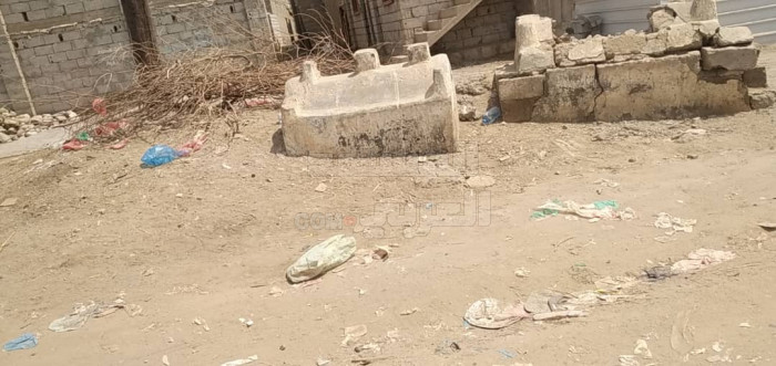 في مشهد غير إنساني، تكدست أكوام القمامة في محيط مقبرة جعار القديمة، دون مراعاة لحرمة الموتى.