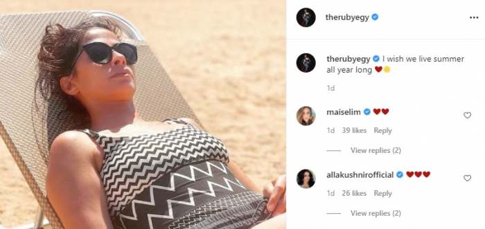 ونشرت روبي الصورة عبر حسابها الرسمي على إنستجرام، وعلقت: "أتمنى أن نعيش الصيف طوال العام".