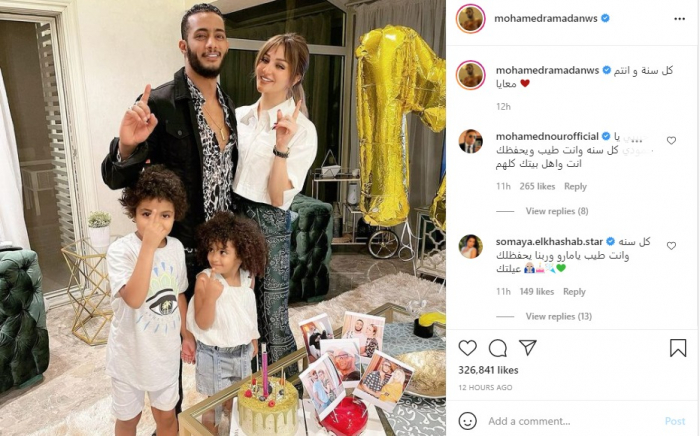 ونشر "رمضان" صورة تجمعه بزوجته وأولاده، عبر حسابه الرسمي بموقع "إنستجرام".