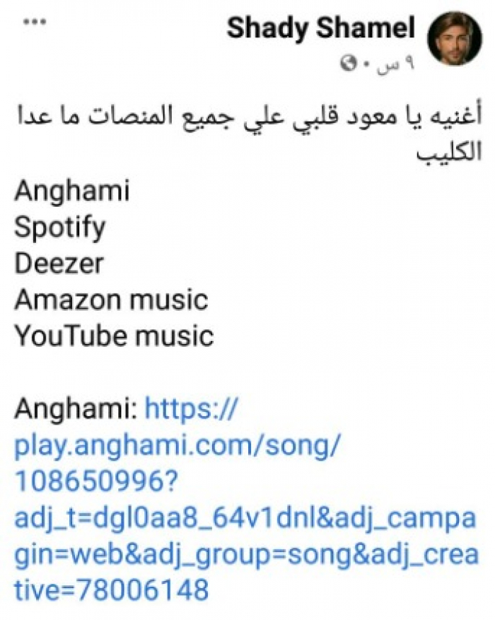 وأضاف: "تامر شال أغنيتي يا معود قلبي إمبارح من اليوتيوب، معرفش عمل كده إزاي، بعد ما كانت داخلة على نص مليون view في أقل من ٢٤ ساعة، وبيدعي اني ما اديتهوش فلوس الأغنيه، مع إنه عاملي تنازل من سنتين في المصنفات الفنية ومختوم بختم الجمهورية وواخد أجره المادي الكامل باعتراف منه، ومعترف بذلك في التنازل، وقالي بعد ما عمل التنازل الأغنية ملكك يا شادي انت تعبت وتستاهل".