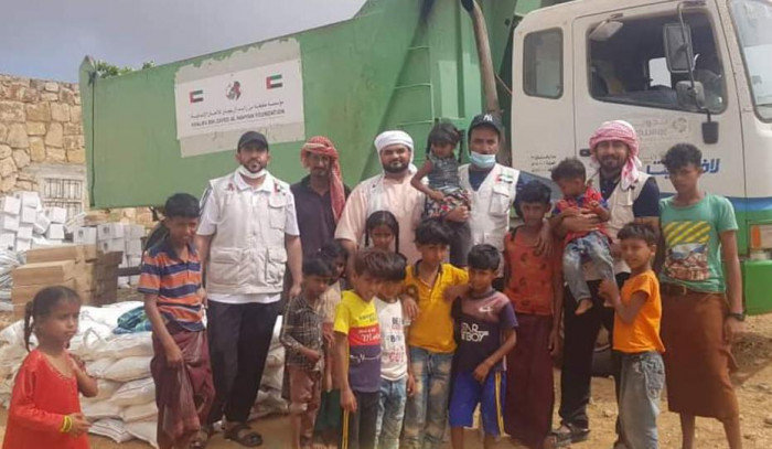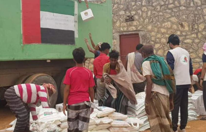 اشتملت المساعدات - التي توزعت على 413 أسرة - على مواد غذائية منها الدقيق، والأرز والسكر والشاي والزيت والتمور والملح.