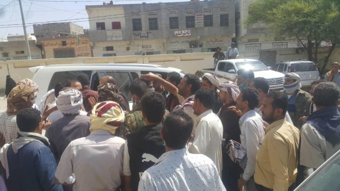 ندد مغتربون من أبناء مديرية بيحان في محيط مستشفى الشهيد الدفيعة، اليوم الثلاثاء، بحرمانهم من الحصول على جرعة لقاح فيروس كورونا.