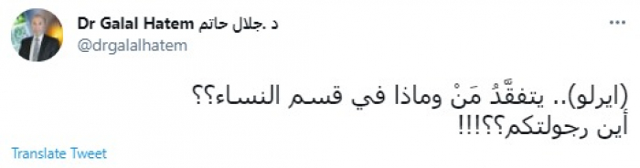 وقال في تغريدة عبر "تويتر" رصدها "المشهد العربي": "(إيرلو).. يتفقَّدُ مَنْ وماذا في قسم النساء؟؟".