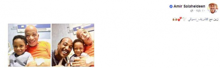 ونشر "أمير" صورًا من الزيارة تجمعه بنجله الصغير "زين" وشريف دسوقي، عبر حسابه على فيسبوك، وعلق: "زين مع شريف دسوقي".