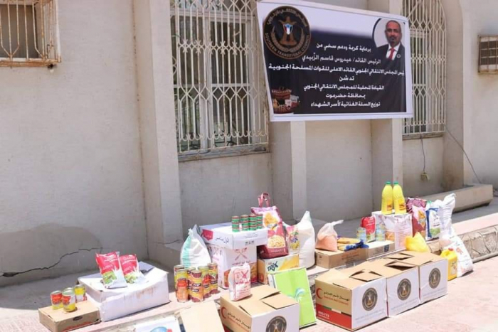 أطلقت الهيئة التنفيذية للمجلس الانتقالي الجنوبي في حضرموت، اليوم الخميس، أعمال توزيع 600 سلة غذائية على أسر الشهداء في المحافظة، بمنحة من الرئيس عيدروس الزُبيدي رئيس المجلس الانتقالي الجنوبي .