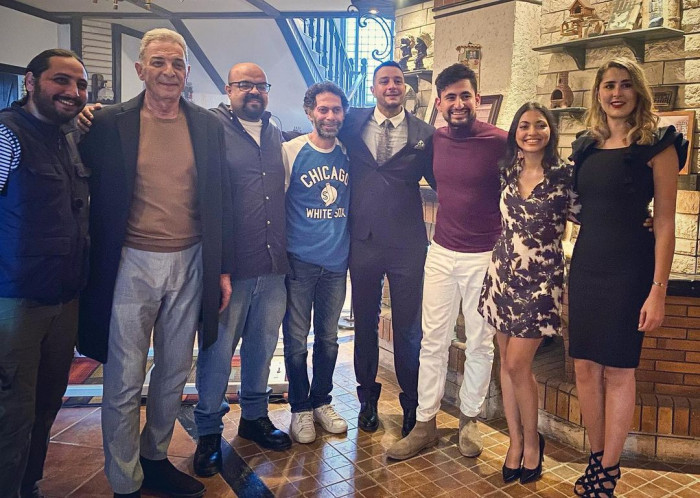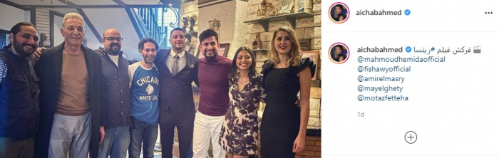 وظهر في الصورة بجوار عائشة بن أحمد كل من محمود حميدة وأحمد الفيشاوي ومي الغيطي وأمير المصري.