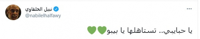 وكتب الحلفاوي، عبر حسابه بموقع "تويتر": "يا حبايبي.. تستاهلها يا بيبو".