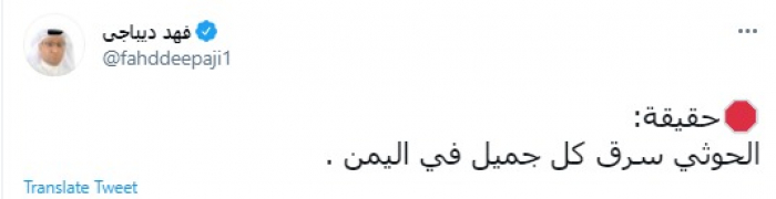 وقال في تغريدة عبر "تويتر" رصدها "المشهد العربي": "حقيقة: الحوثي سرق كل جميل في اليمن".