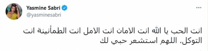 نشرت الفنانة ياسمين صبري، عبر حسابها بموقع "تويتر"، تغريدة تناجي فيها الله تعالى.