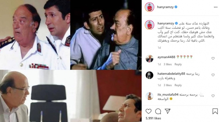 ونشر رمزي، صورا له مع الراحل عبر حسابه على إنستجرام، وعلق: "النهاردة عدى سنة على وفاتك يا عم حسن.. لو فضلت سنة أكتب عنك مش هوفيك حقك.. كنت أخ كبير وأب واتعلمنا منك كتير، ولسه هنتعلم من أعمالك اللي باقية لنا.. ربنا يرحمك ويغفر لك".