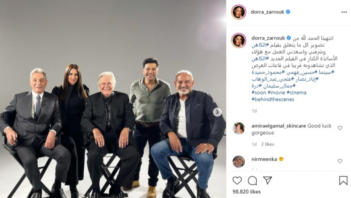 ونشرت درة صورًا تجمعها بأبطال العمل حسين فهمي، محمود حميدة، جمال سليمان، إياد نصار، وفتحي عبد الوهاب، وذلك عبر حسابها الرسمي بموقع "إنستجرام".