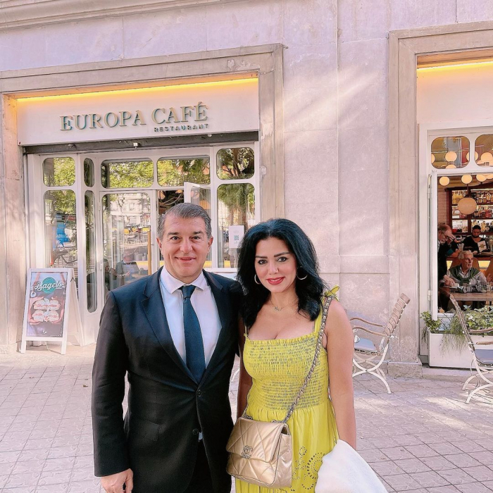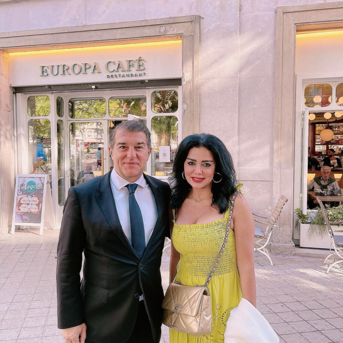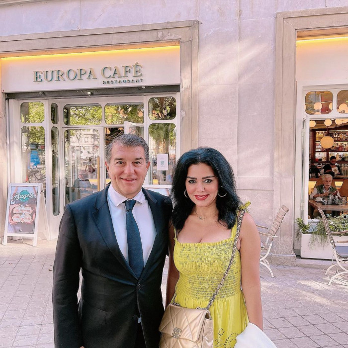 التقت الفنانة المصرية رانيا يوسف برئيس نادي برشلونة "خوان لابورتا".