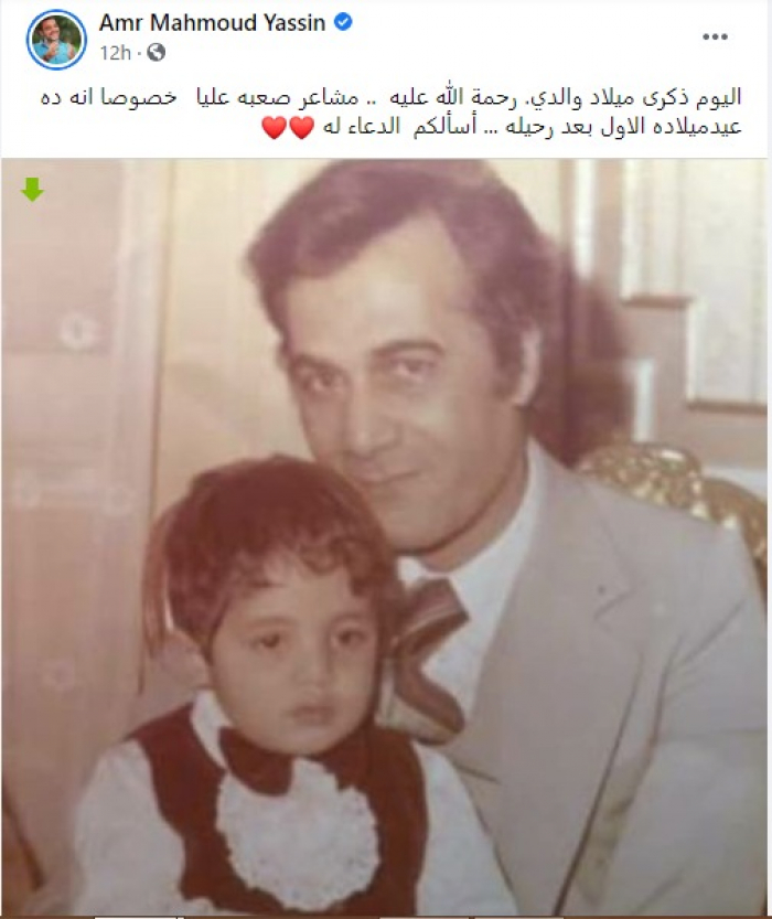 ونشر عمرو صورة تجمعه بوالده، عبر حسابه الشخصي بموقع "فيسبوك"، علق :"اليوم ذكرى ميلاد والدي رحمة الله عليه، مشاعر صعبة عليا، خصوصا إنه ده عيد ميلاده الأول بعد رحيله، أسألكم الدعاء له".