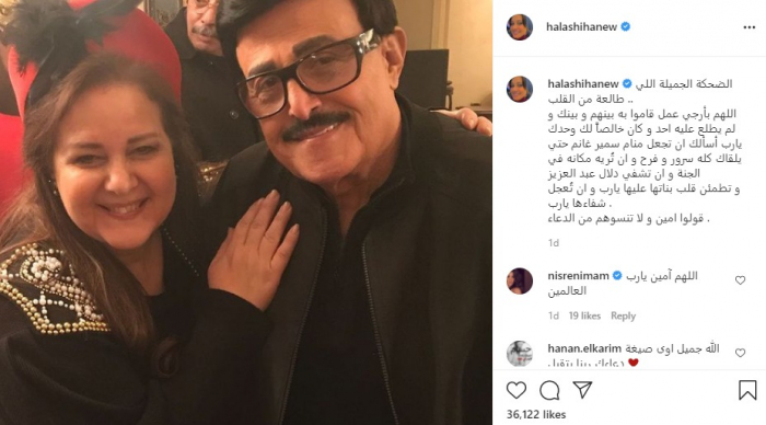 وكتبت عبر حسابها الرسمي بموقع "إنستجرام": "الضحكة الجميلة اللي طالعة من القلب اللهم بأرجي عمل قاموا به بينهم و بينك و لم يطلع عليه احد و كان خالصاً لك وحدك يارب أسألك ان تجعل منام سمير غانم حتي يلقاك كله سرور و فرح و ان تُريه مكانه في الجنة و ان تشفي دلال عبد العزيز وتطمئن قلب بناتها عليها يارب و ان تُعجل شفاءها يارب قولوا امين و لا تنسوهم من الدعاء".
