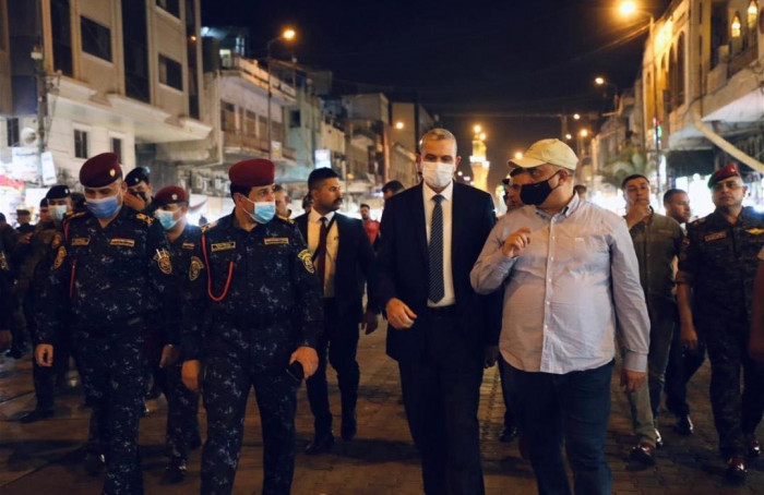 وتفقد وزير الداخلية عثمان الغانمي ووكيل الاستخبارات العراقية الفريق أحمد أبو رغيف موقع "انفجار الكاظمية.