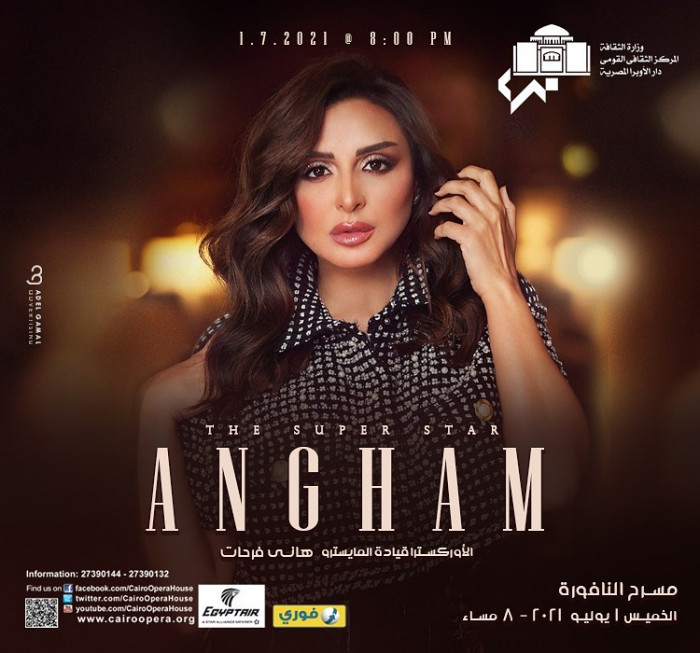 ونشرت أنغام عبر حسابها على إنستجرام، بوستر الحفل، وعلقت: "استنوا حفلتي في دار الأوبرا المصرية على مسرح النافورة يوم 1 يوليو الساعة 8 مساءً".