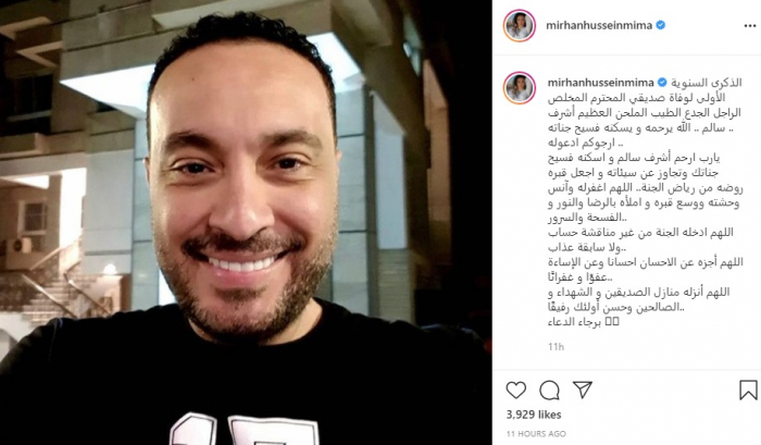 ونشرت ميريهان، صورة له عبر حسابها على إنستجرام، وعلقت: "الذكرى السنوية الأولى لوفاة صديقي المحترم، المخلص، الراجل الجدع، الطيب، الملحن العظيم أشرف سالم.. الله يرحمه ويسكنه فسيح جناته.. أرجوكم أدعوله".
