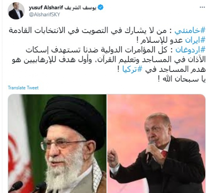 الشريف يكشف أوجه الشبه بين متاجرة خامنئي وأردوغان بالإسلام