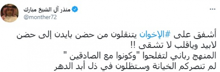 منذر آل الشيخ لـ الإخوان: الخيانة لم تنصركم.. والذل سيلازمكم أبد الدهر
