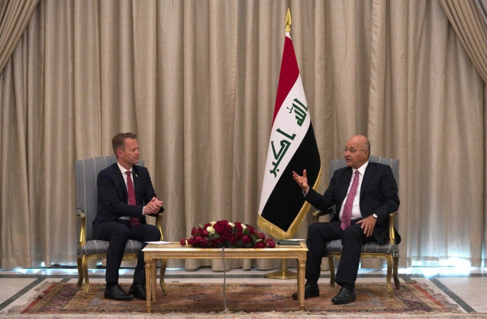 التقى الرئيس العراقي برهم صالح، اليوم في بغداد، وزير الخارجية الدنماركي جيبي كوفو، خلال زيارته الحالية التي بدأها اليوم للعراق.