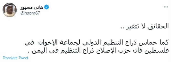 مسهور: حماس وحزب الإصلاح أذرع للتنظيم الدولي للإخوان