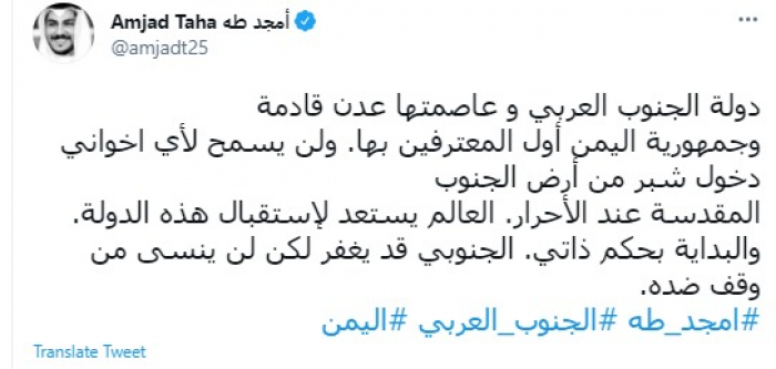 أمجد طه: دولة الجنوب العربي قادمة.. والعالم يستعد لاستقبالها