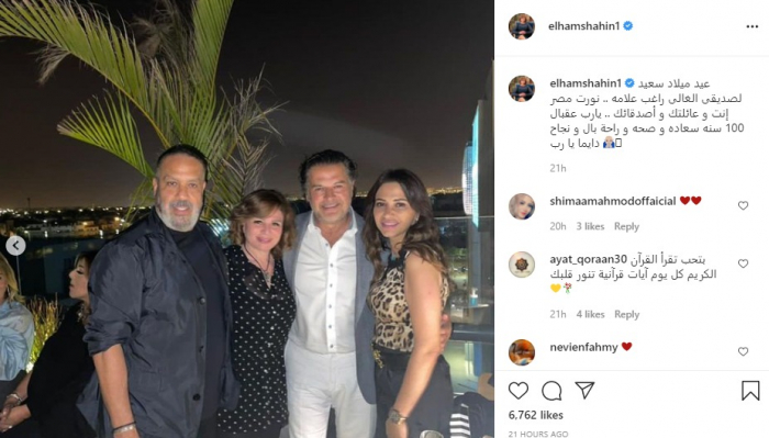 ونشرت "إلهام" صورًا من الاحتفال الذي أقيم مساء أمس، وعلّقت عبر حسابها على موقع "إنستجرام": "عيد ميلاد سعيد لصديقي الغالي راغب علامة.. نورت مصر أنت وعائلتك وأصدقائك.. يارب عقبال 100 سنة سعادة وصحة وراحة بال ونجاح دايما يا رب".