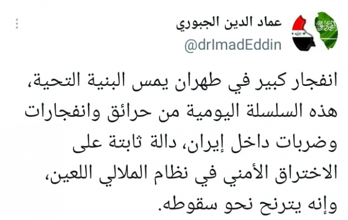 رأى المحلل السياسي عمادالدين الجبوري، أن سلسلة الحوادث الغامضة في إيران، دليل على اختراق نظام ملالي طهران.