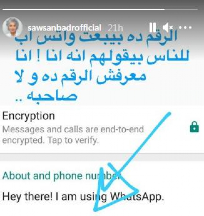 وكتبت "سوسن" عبر خاصية "القصص القصيرة" على حسابها الرسمي بموقع " إنستجرام": "الرقم ده بيبعت واتساب للناس بيقولهم إنه أنا، أنا معرفش الرقم ده ولا صاحبه".