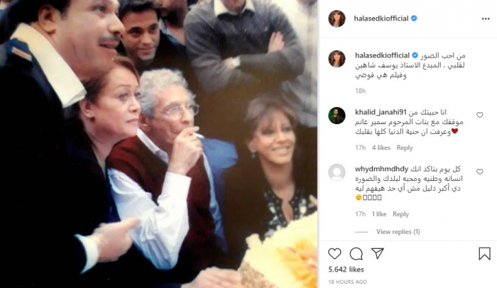ونشرت "هالة" صورة تجمعها بالمخرج الكبير يوسف شاهين، والفنان الراحل خالد صالح، وهالة فاخر، ويوسف الشريف، وعلقت :" من أحب الصور لقلبي، المبدع الأستاذ يوسف شاهين وفيلم هي فوضى".