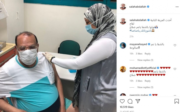 ونشر "صلاح"، صورة له أثناء تلقيه جرعة التطعيم، عبر حسابه على إنستجرام، وعلق: "أخدت الجرعة الثانية لقاح.. قولوا بالشفا يا عم صلاح".