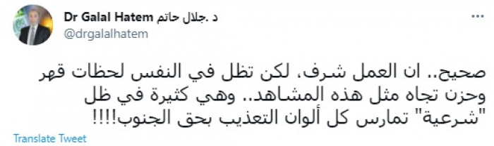 وكتب في تغريدة عبر "تويتر" رصدها "المشهد العربي": "صحيح.. إن العمل شرف، لكن تظل في النفس لحظات قهر وحزن تجاه مثل هذه المشاهد".