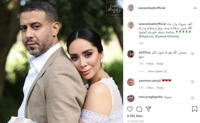 ونشرت سوسن صورة لهما من حفل الزفاف، عبر حسابها على إنستجرام، وعلقت: "ألف مبروك وإن شاء الله سنين سعادة وحب وفرح ونجاح وذرية صالحة تسعد قلوبكم الحلوة".