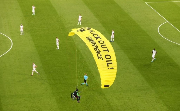 وذكرت الشرطة أن الشخص البالغ من العمر 38 عاما، والذي قام بهذا التصرف تعبيرا عن الاحتجاج نيابة عن منظمة "جرينبيس" (السلام الأخضر)، تم إلقاء القبض عليه بعد أن تسبب في إصابة شخصين.