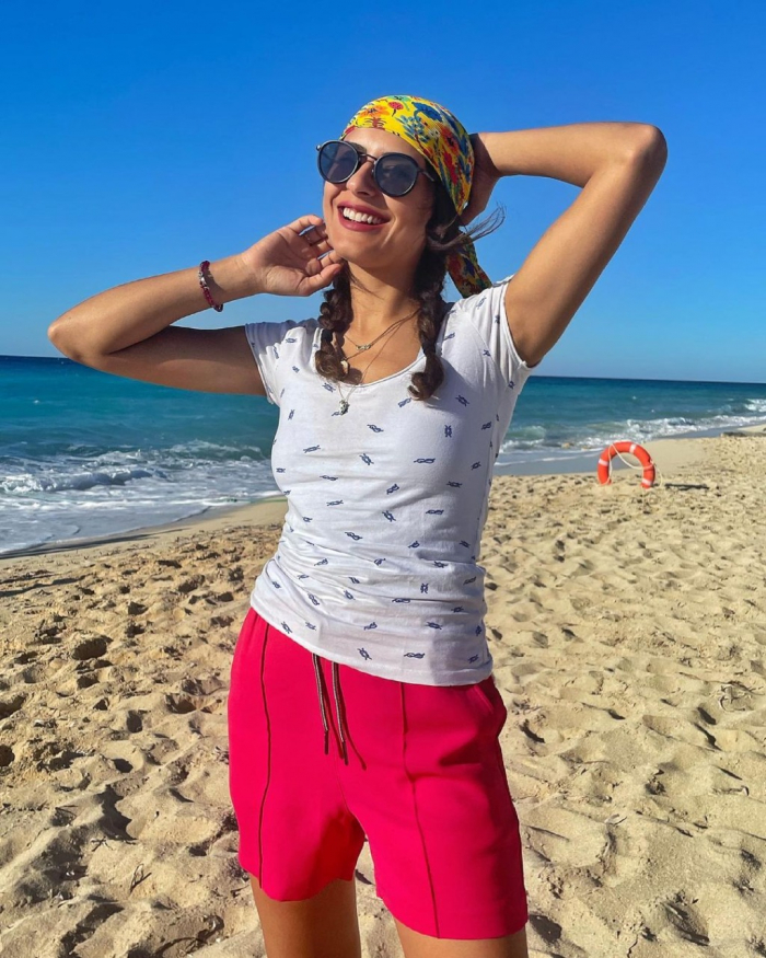 ظهرت الفنانة ريهام أيمن بإطلالة صيفية بسيطة على الشاطئ في أحدث جلسة تصوير خضعت لها.