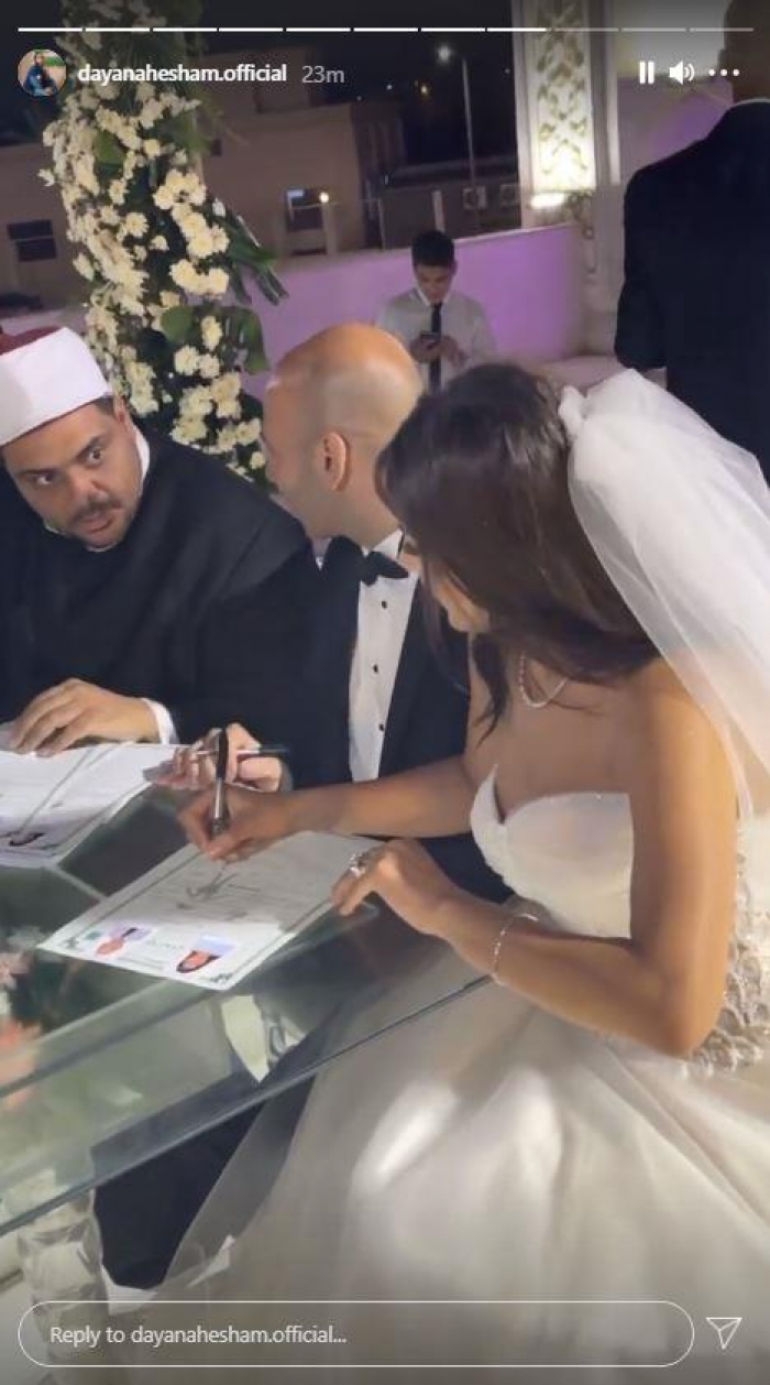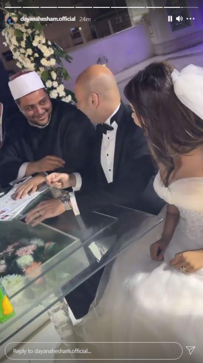 ونشرت الفنانة ديانا هشام، عبر "ستوري" حسابها بموقع "إنستجرام"، صورًا من عقد القران .