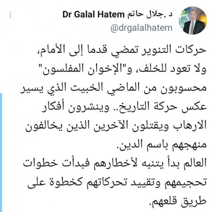 حاتم: الإخوان مفلسون وينشرون أفكارًا إرهابية