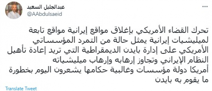 أشاد الإعلامي السوري عبدالجليل السعيد، اليوم، بقرار أمريكا بإغلاق مواقع تابعة لإيران.