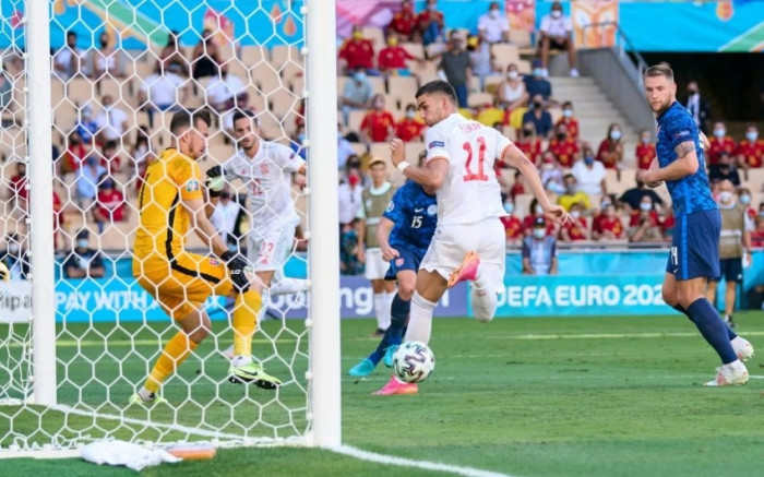أحرزت إسبانيا فوزًا كاسحًا على سلوفاكيا بـ 5 أهداف مقابل لا شيء، ضمن منافسات الجولة الثالثة للمجموعة الخامسة في "يورو 2020"، ليتأهل المنتخب الإسباني لدور الـ16.