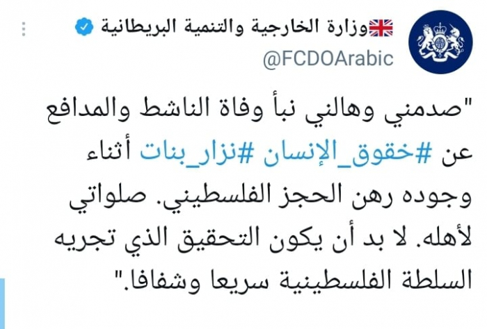وزير بريطاني: وفاة الناشط الفلسطيني نزار بنات صادمة