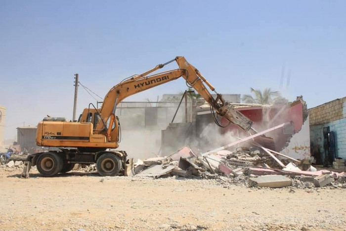 هدم استحداثات بموقع مشروع "الخط البحري" في الشحر