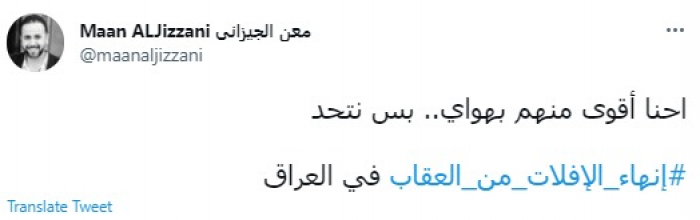 وقال في تغريدة عبر "تويتر" رصدها "المشهد العربي": "إحنا أقوى منهم بهواي.. بس نتحد.. إنهاء الإفلات من العقاب في العراق".