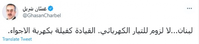 وقال في تغريدة عبر "تويتر" رصدها "المشهد العربي": "لبنان...لا لزوم للتيار الكهربائي. القيادة كفيلة بكهربة الأجواء".