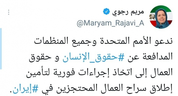 رجوي تدعو الأمم المتحدة لإنقاذ العمال المحتجزين بإيران
