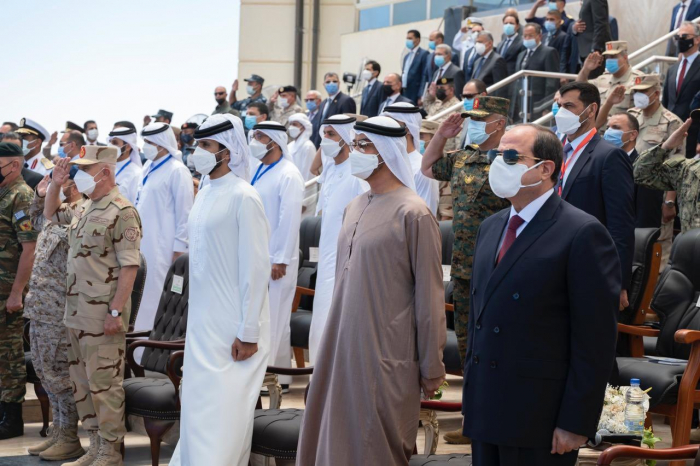 عبر الشيخ محمد بن زايد، ولي عهد أبوظبي، نائب القائد الأعلى للقوات المسلحة الإماراتية، عن سعادته بالمشاركة في افتتاح قاعدة 3 يوليو البحرية في مصر.